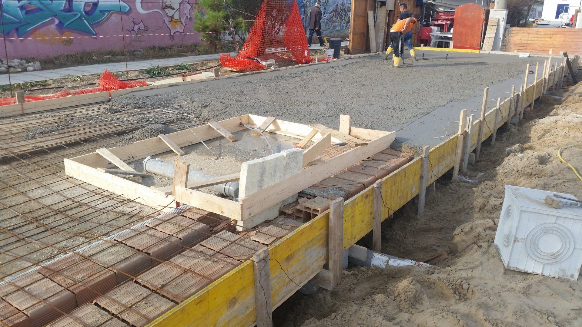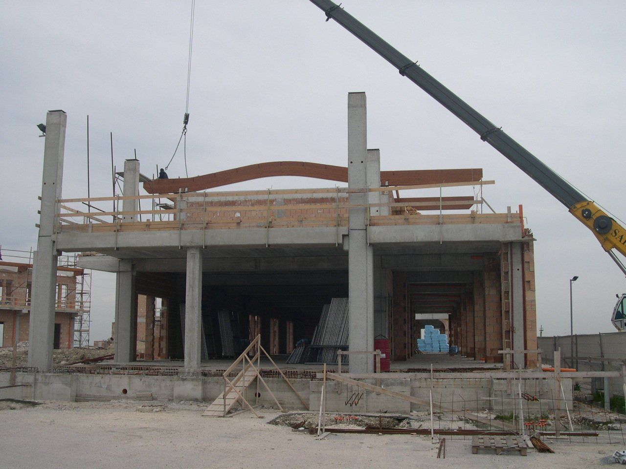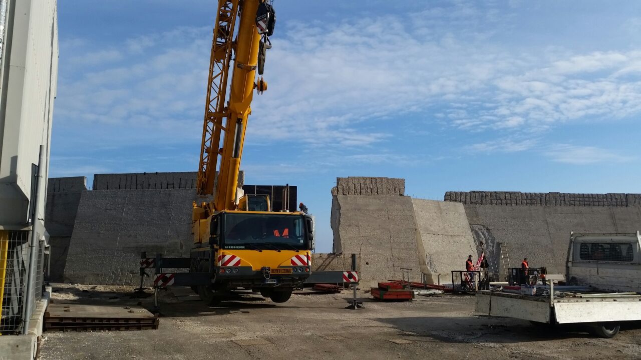 La struttura di fondazione è stata realizzata su pali in cls successivamente riempiti in cls, collegati tra loro da travi sulle quali saranno poste le predalles.