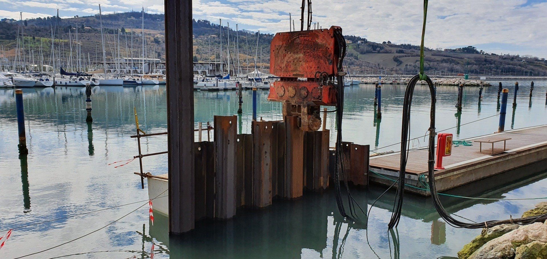 Il presente intervento ha presvisto la modifica della banchina N1 esistente presso il porto turistico "La Marina Dorica" di Ancona mediante la realizzazione di una struttura su palancole infisse al piede della scogliera interna. Tale struttura è poi stata collegata al masso di sovraccarico mediante una pavimentazione in c.a.
