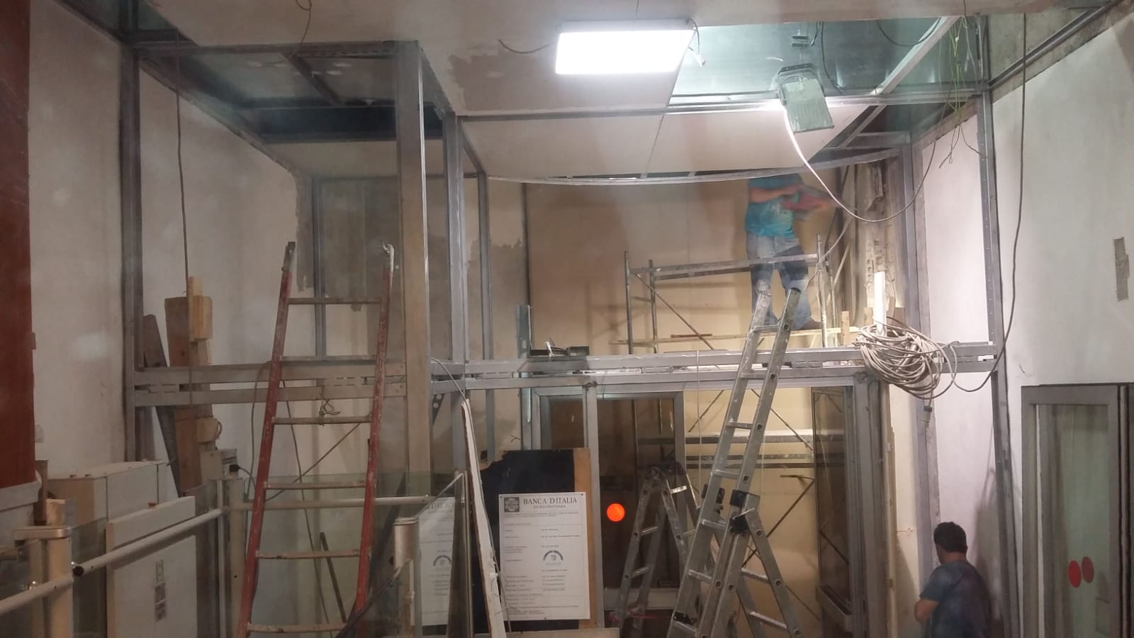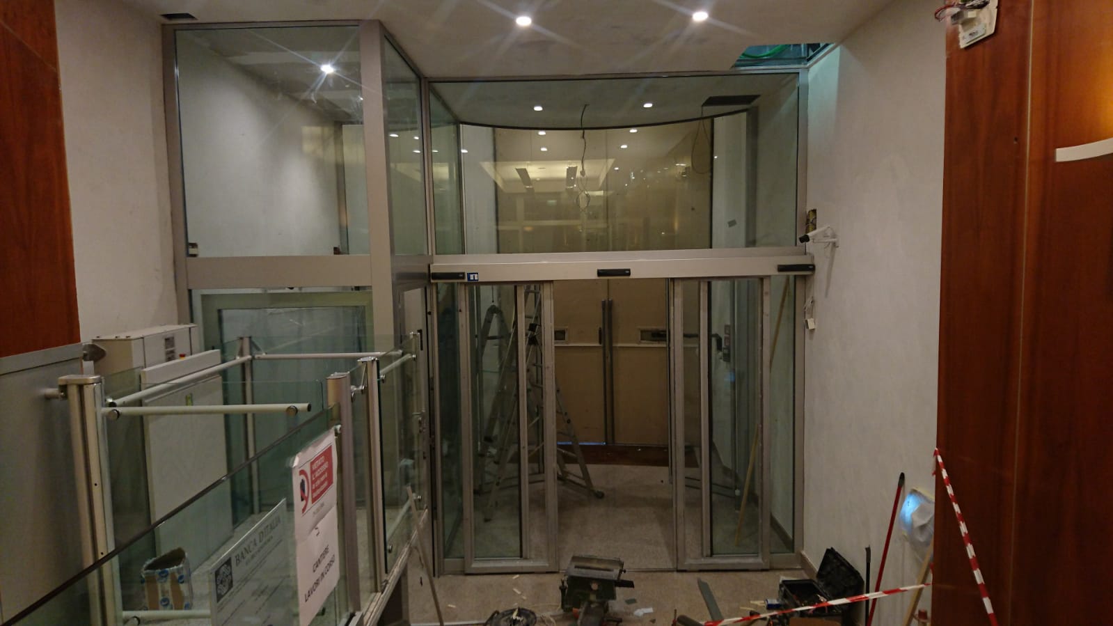 Il tutto costituito da elementi blindati (vetri e strutture metalliche) da terra fino a soffitto posto a 6,00 m di altezza.