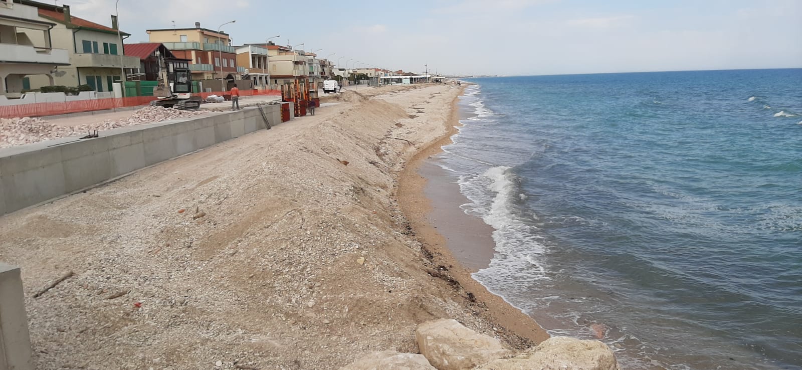• una ossatura della spiaggia con massi naturali fino a 100 kg per assorbire l’energia del run up dell’onda in condizioni di marea media e costituire il supporto per i futuri ripascimenti;